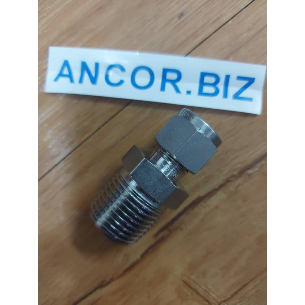 SS-600-1-8 Stainless Steel Swagelok Tube Fitting, Male Connector, 3/8 in. Tube OD x 1/2 in. Male NPT