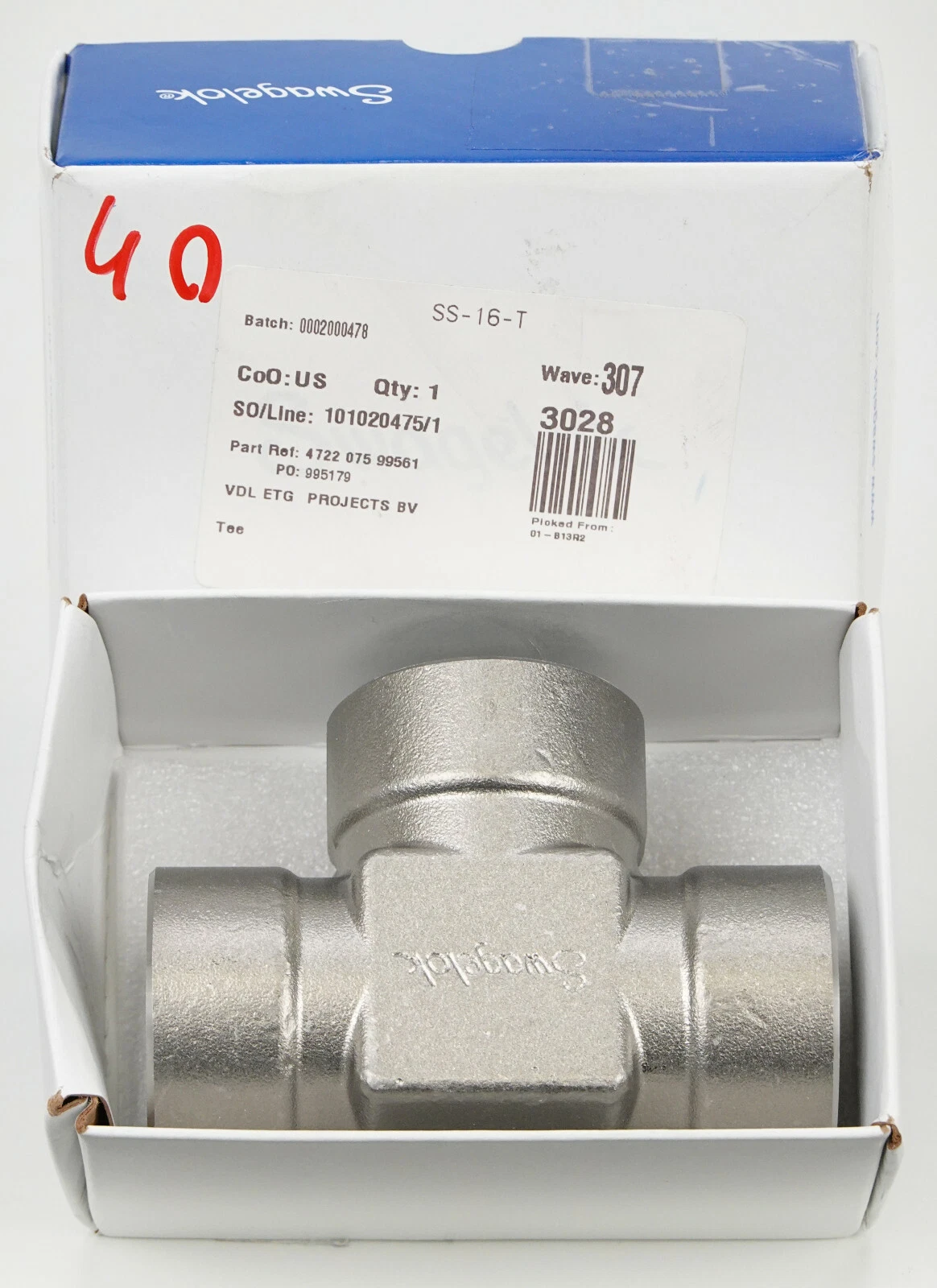 Swagelok SS-16-T Stainless Pipe Fitting, Tea, 1 inch Female NPT